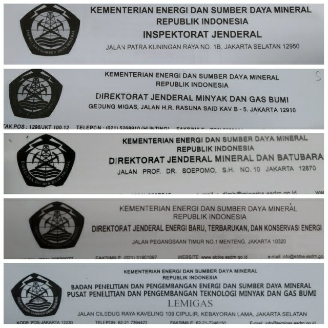 Misalnya pada Kementerian ESDM, secara lokasi gedung berbeda alamat. Setiap Direktorat Jenderal memiliki gedung dan beralamat masing masing.