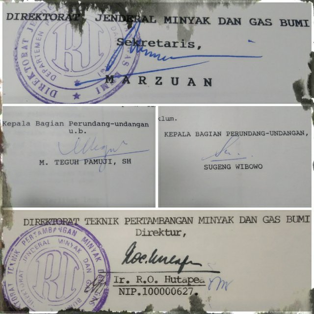 Tanda Tangan Ditulis olehNurul MuhamadFebruari 3, 2020Februari 3, 2020Diposkan padaUncategorized Sekretaris Direktorat Jenderal Migas : Marzuan Direktur Teknik Pertambangan Migas: Hutapea Bagikan ini: Bagikan ke X(Membuka di jendela yang baru) X Bagikan pada Facebook(Membuka di jendela yang baru) Facebook Suka Memuat... Terkait Diterbitkan oleh Nurul Muhamad Pencerita dan Pencari Makna Lihat lebih banyak pos