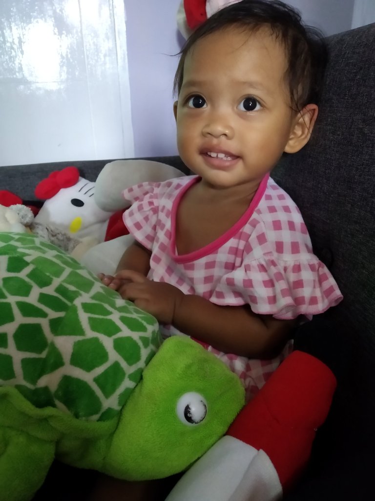 Aku pun yang menerima sorot mata tajam ya, tak kuasa untuk menghampiri. Untung kedua kakaknya sudah lebih dulu tertidur. Aku pun menggendongnya dan sedikit mengayun ayun. Kupangku dan kunyanyikan lagu tidur, serta kuberikan boneka minion dalam pelukan Rara.