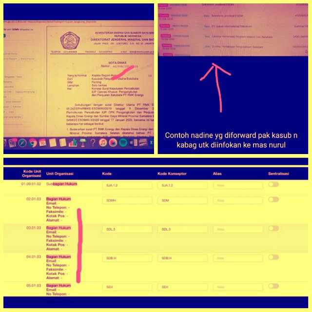 Misalnya pejabat pengawas urusan informasi Hukum, pak Fauzi menyampaikan bahwa banyak surat Ditjen minerba yang melipir ke akun Kabag Hukum Ditjen Migas.