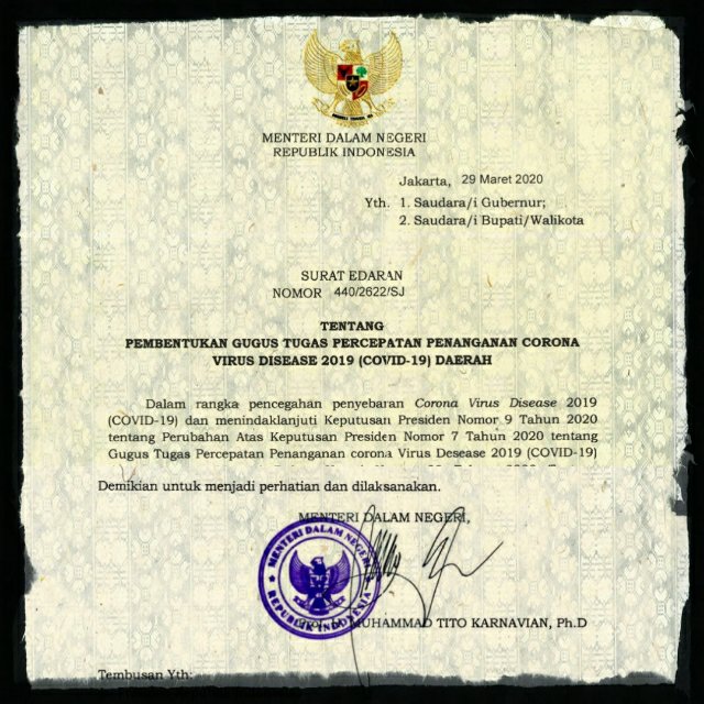- Tembusan : Presiden, Kabinet Kerja, Ketua Gugus Tugas COVID 19 Nasional