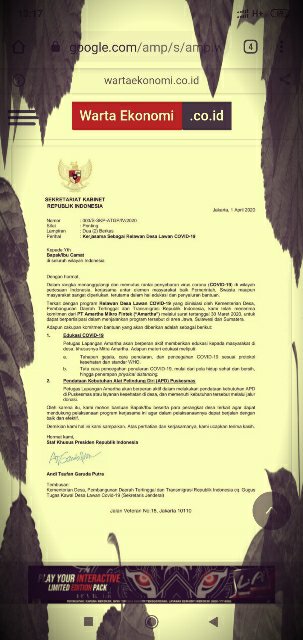 Staf Khusus Presiden surati camat seluruh Indonesia dengan Kop Surat Sekretariat Kabinet. 15 April 2020 itu, beberapa media nasional memberitakan terkait isi, bentuk & konteks surat tersebut yang telah beredar luas.