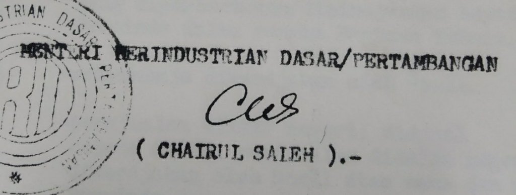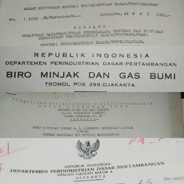 Susunan organisasi Departemen Perindustrian Dasar Pertambangan oleh Menteri Chaerul Saleh (SK No. 1559/M/Perdatam/61 tanggal 26 Mei 1961). Pada bidang pusat urusan departemen terdapat jabatan Sekretaris Djenderal, Kabinet Menteri, Biro Perusahaan Negara dan Biro Sekretaris Djenderal