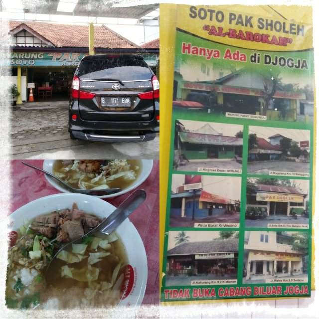 Diantara kuliner Soto di Yogyakarta, Warung Soto Pak Sholeh telah melegenda. Penikmatnya, datang tidak saja para tua sebagaimana lamanya beroperasi Warung. Keberadaan warung ini jau lebih tua dari usiaku. Konon lebih dari 60 tahun yang lalu, warung Soto Pak Sholeh telah mencirikan kekhasan racikan bumbu sotonya Yogyakarta.
