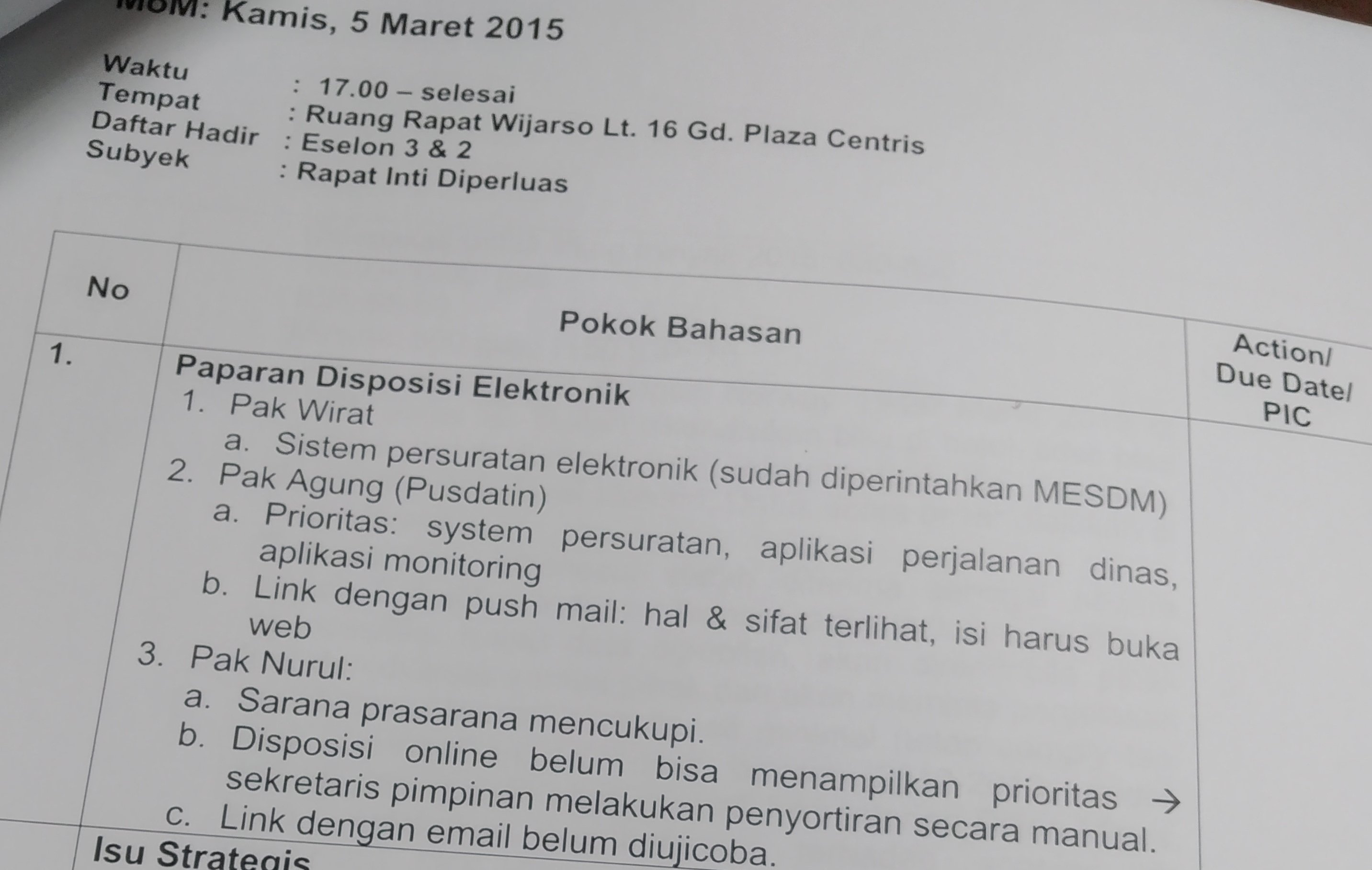 Kondisi pun berubah drastis. Saat ini hampir semua instansi telah menerapkan disposisi elektronik. Arahan pekerjaan yang semula harus dituangkan dalam lembaran kertas telah bertransformasi ke Digital.