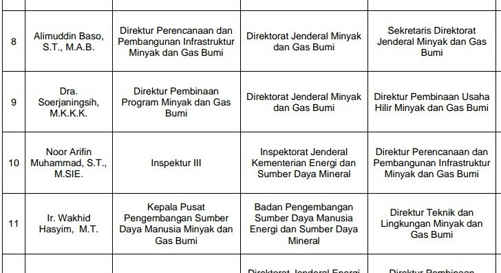 Akhirnya, rekaman kegiatan pengisian jabatan tinggi bakal menambah khasanah kearsipan. Satu diantaranya daftar arsip pejabat tinggi Ditjen Migas sempat sejak berdirinya Direktorat Jenderal Migas. Misalnya daftar nama Direktur DMT (Teknik dan Lingkungan Migas) sebagai berikut: