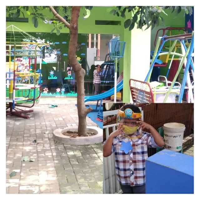 Dipta tidak mengambil sistem daring atau sekolah online. Keputusanku dan istri untuk tetap menghadirkan suasana kelas untuk Dipta dilandasi ada pilihan dari pihak sekolah. Selain itu, melihat karakter Dipta yang sangat senang bersosialisasi.