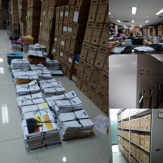 Foto yang dominan di atas memperlihatkan berkas inaktif yang diurutkan sesuai nomor definifif. Terlihat arsip belum dibungkus dengan folder.