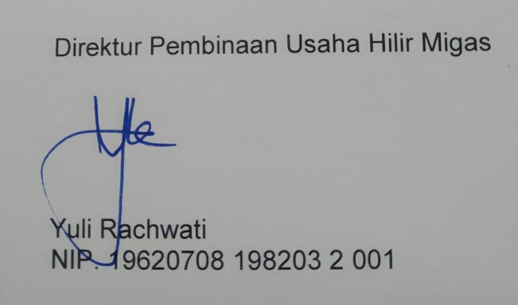 Direktur Hilir Migas Ditulis olehNurul MuhamadApril 15, 2021April 23, 2021Diposkan padaMigasTag:Tanda_tangan Wiranto Wiromartono Erie Soedarmo Saryono Hadiwijoyo Yuli Rachwati Bagikan ini: Bagikan ke X(Membuka di jendela yang baru) X Bagikan pada Facebook(Membuka di jendela yang baru) Facebook Suka Memuat... Terkait Diterbitkan oleh Nurul Muhamad Pencerita dan Pencari Makna Lihat lebih banyak pos