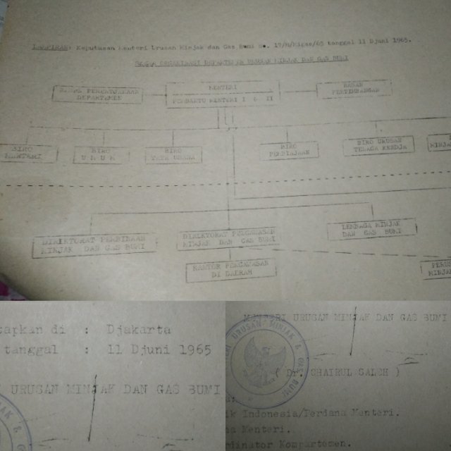 Tentu ini akan menambah rasa kebanggaanku sebagai petugas arsip Ditjen Migas, nyatanya Ditjen Migas sempat disejajarkan tingkat Departemen. Jika di tahun 1964, bentuk organisasi Direktorat Jenderal level, per 11 Juni 1965 menjadi Departemen Urusan Minyak dan Gas Bumi dengan dipimpin seorang Menteri.
