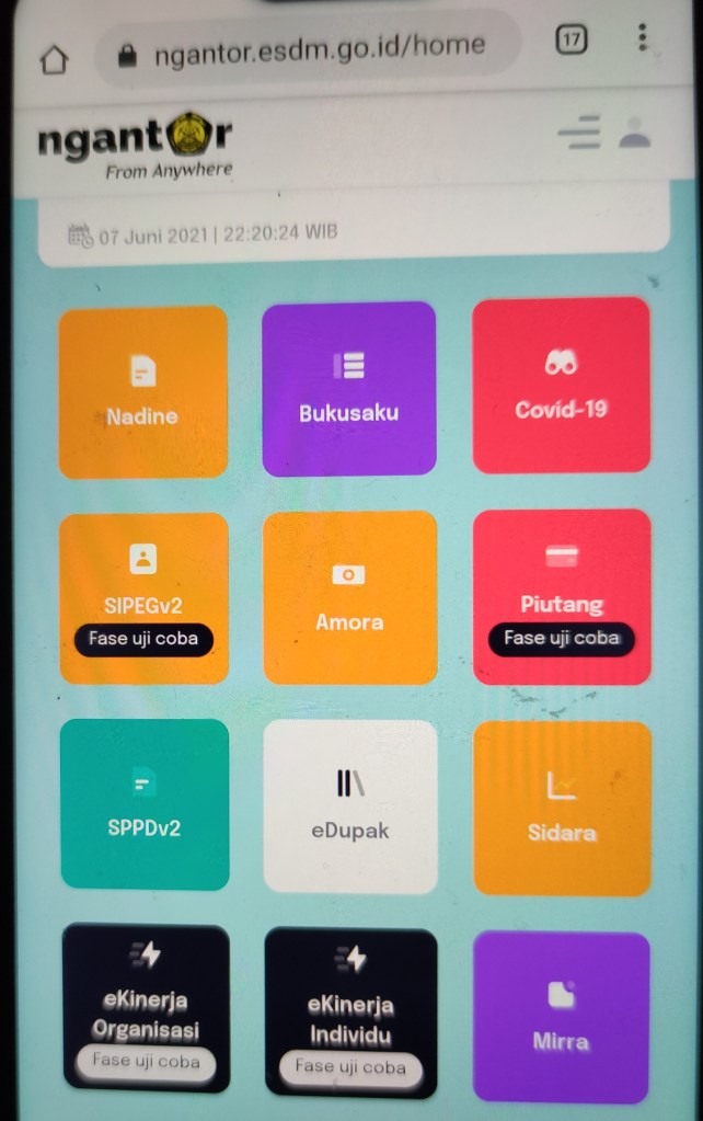 Melalui WAG, Info jam 11.10 sampai dengan 18.38 WIB di hari Senin 7 Juni 2021. Pengelola Aplikasi Surat Pusdatin: Yth. Bapak/Ibu Pegawai Kementerian ESDM Sehubungan dengan adanya gangguan pada aplikasi Nadine, kami informasikan bahwa layanan Nadine untuk sementara ini tidak dapat digunakan. Kami sedang menindaklanjuti dan memonitor perkembangannya. Mohon maaf atas ketidaknyamanan yang ditimbulkan, terima kasih. Kapusdatin ESDM,🙏🏻