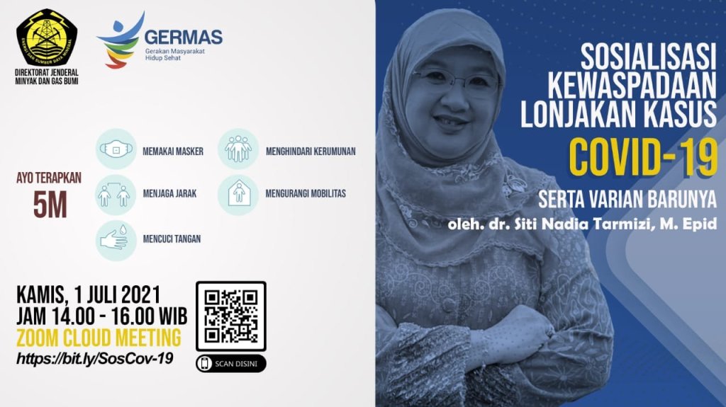 Direktur P2 Penyakit Menular Langsung pada Kementerian Kesehatan menjadi narasumber pada Bincang Kesehatan Ditjen Migas melalui Daring (zoom). Kesimpulan nya : pandemi belum berakhir, perkembangan virus sangat dinamis (mutasi, long covid, Positif persisten, reinfeksi,Vaksin), Pengobatan masih empiric karena belum ada obat yang definitif, pencegahan menjadi hal utama (3M+3T),Vaksinasi sebagai salah satu unsur pencegahan.