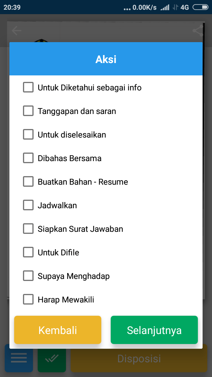 User Level staf diharapkan melakukan menindaklanjuti disposisi pada kota masuk dengan klik selesai, balas, atau komentar pada menu di aplikasi tersebut.