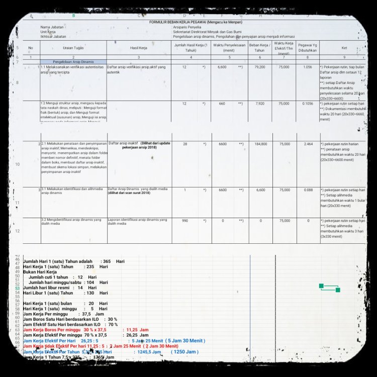 Penulis yang mewakili unit kearsipan Ditjen Migas menyampaikan bahwa pada saat permintaan bahan atau data dukung terkait kebijakan revisi permen no 11 tahun 2015, pada bulan Mei 2018, unit kearsipan telah mengisi formulir beban kerja sesuai permen PAN dg total 12 orang arsiparis dengan rincian sebagai berikut: