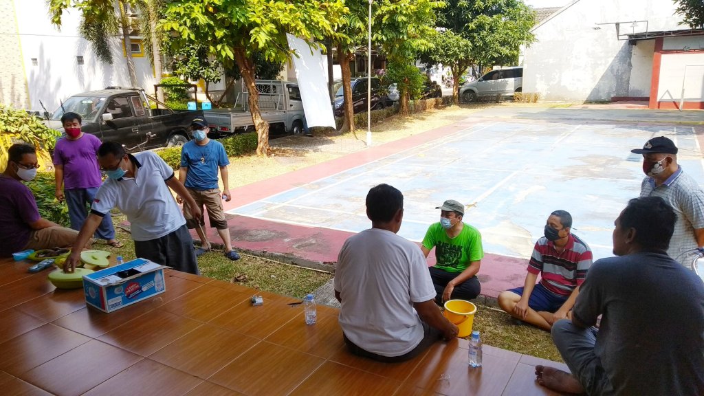 Semakin nyata hal yang baru itu, di pagi ini, Sabtu 25 Juli 2020. Aku pun tergabung dalam suasana bhakti lingkungan/kerja Bhakti. Terlihat beberapa bapak : Eko, Baderi, Surya, Irwan, Juhani berada Fasos VTB sedang hangat berbincang memperhitungkan kapasitas jamaah Sholat, saat kedatanganku. Beberapa saat kemudian, bergabung bapak lainnya: Bayu S, Ibnu, Yanto, Ade, Iqbal, Afrian, Anwari hingga mengenapi 13 orang.