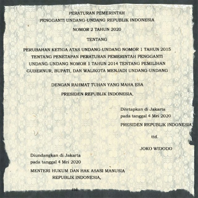 - Kop Keputusan mempergunakan Lambang Negara Garuda Kuning Emas, pada Naskah Asli sedangkan untuk Salinan masih terlihat garuda warna hitam.