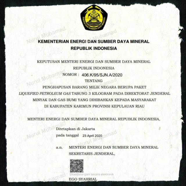 - Judul tulisan : Keputusan Menteri ESDM RI