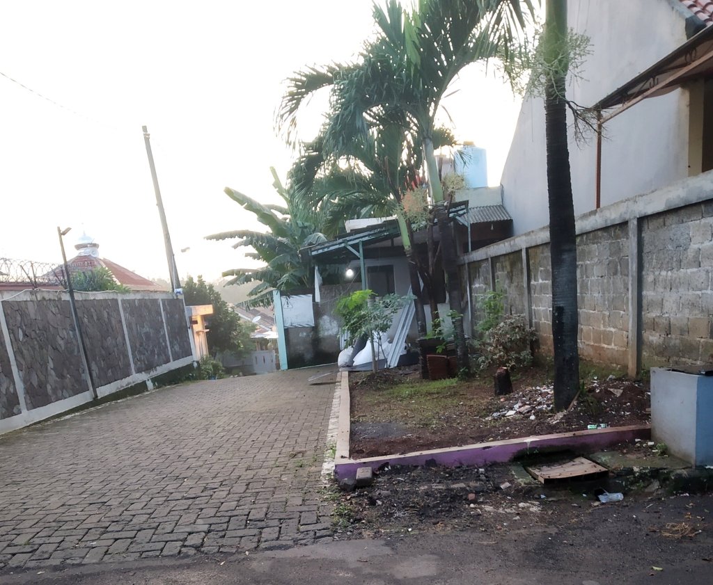 Pagi hari, lepas hujan turun di Perumahan Villa Tanah Baru, area sekitar Bank Sampah VTB sebagian masih dalam kondisi tanah dengan beberapa pohon terlihat kurang teratur menjadi arena beberes lingkungan.