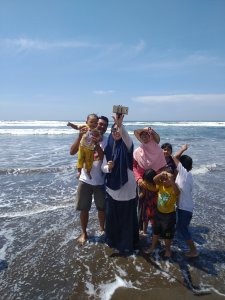 Jam 7 pagi bersiap ke pantai Parang Tritis. Ketiga kali nya, dipantai yang terkenal dengan misteri Nyo Roro Kidul, Dipta tenggelam dalam keriangan bermain pasir dan ombak.