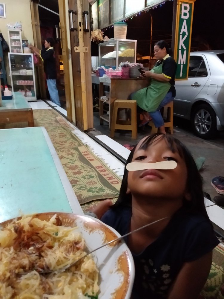 Lepas magrib, naik motor menyurusi jalan di sekitar sampai ke pasar malam Denggung (naywa, nayla dan Dipta) menjadi isian aktivitas dimana makan es Cream Campina di depan Indomaret Warak Lor dan berakhir di warung bakmi pak Hardi.