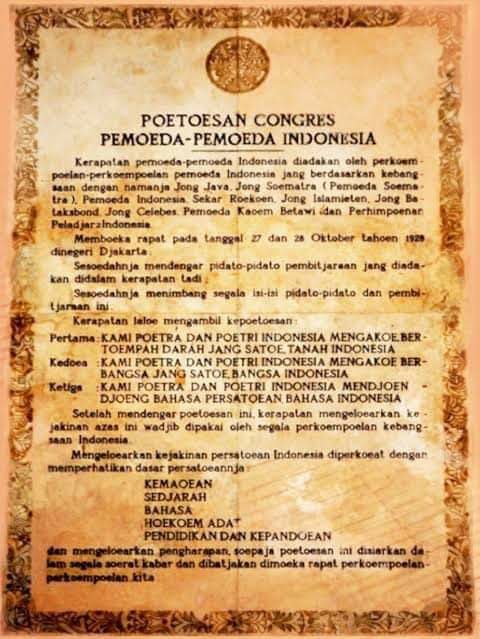 Teks sumpah pemuda yang telah disempurnakan pada ejakan kata katanya berbunyi :
