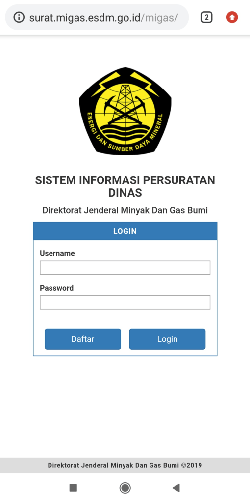 – Login ke Sistem Informasi Persuratan Ditjen Migas sebagai arsiparis.